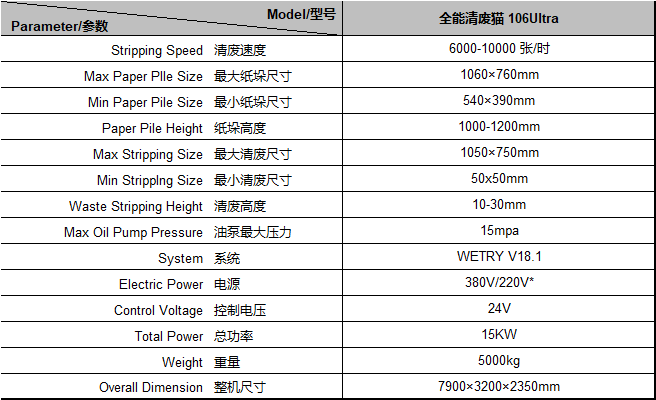 1、采用獨創(chuàng)的發(fā)明專利技術(shù)(2024115145971),具有強大的免模具整版全清功能,實現(xiàn)自動上紙、自動對齊、自動清廢的連貫作業(yè),清廢后產(chǎn)品自動碼垛歸位,廢料同步自動移除,大幅減少人工干預環(huán)節(jié)。